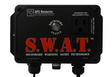 The SWAT (Secondary Warning Alert Technology) is a device used in with a vehicle restraint system to alert people nearby to be aware of a change in dock status. The S.W.A.T. flashes the dock light when the restraint faults to indicate a change in dock status.