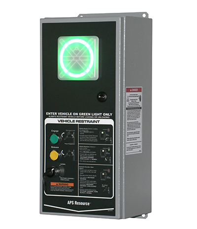 New in 2018, the innovative and streamlined APS Restraint Control Panel features a thinner, space-saving profile as well as a singular NEMA 4X rated LED Composite Light with multiple display ability. This bright, easy-to-understand indicator light alerts drivers and workers to the state of the dock before taking action.