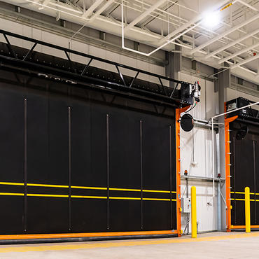 From forklifts to heavy equipment, the Albany UltraBig high performance rubber door handles large openings (up to 50' x 35') with speed and reliability, even in the harshest environments. The UltraStrong curtain protects against extreme temperatures while the Gusset and Windlok system keeps the door functioning in wind of up to 20 psf (88mph).